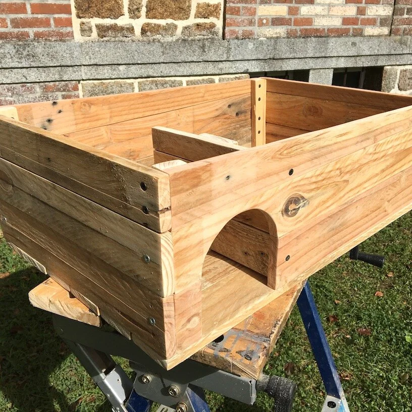 The excitement started when we noticed two discarded pallets at the local dump so dragged them home and turned them into homes for wildlife (after checking they hadn’t been treated with chemicals).